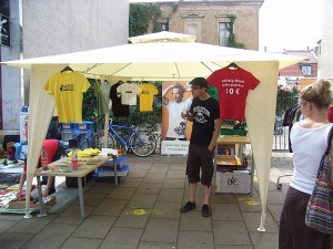 Alle Jahre wieder … keine Bange, auch wir finden, für Weihnachten ist es noch ein wenig früh (lassen uns die Gewürzspekulatius aus dem Supermarkt unseres Vertrauens dennoch schon jetzt munden). Nein, es ist wieder Zeit für Westbesuch bzw. das Westpaket bei uns um die Ecke. Diesmal beteiligen wir uns mit einem Spreadshirt-Stand an der Herbstversion des Straßenfestivals auf der Karl-Heine-Straße. Wir werkeln ja immernoch im gleichen Stadtteil und sind daher jedes Jahr mindestens einmal mit dabei, wenn es heißt, Leipzig-Plagwitz mit Ständen, Bühnen und anderen kulturellen und kulinarischen Highlights zu beleben.