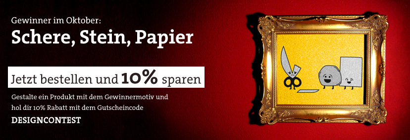 Der erste Community Design Wettbewerb wurde entschieden zugunsten des Gewinnermotivs Schere, Stein, Papier. Gestaltet hat das Motiv der Designer badbugs.