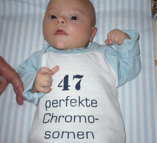 Hier also die Geschichte zu unserem T-Shirt mit dem Aufdruck “47 perfekte Chromosomen”: