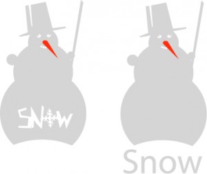 Wäre “snow” eine Wortmarke, wäre das Beispiel links mit der Intergration unseres Erachtens nach geglückt, das rechte Motiv würde abgelehnt.