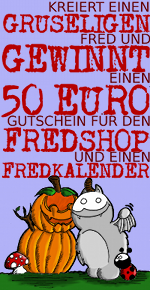 Fürst Frederick fon Flatter heißt ein tollkühne Held, der täglich kleine und große Abenteuer besteht. Diese Abenteuer kannst Du Dir nun nach Hause holen! Nimm an unserem Gewinnspiel teil und ergatter einen Kalender sowie einen 50€-Gutschein für den Shop des süßen Flatterviehs. Kreiere hierfür eine niedlich-gruselige Fledermaus und schicke sie an Fürst Frederick persönlich per Mail [fonflatter@gmail.com]. Dabei ist egal, ob du diese bastelst, malst oder anders herstellst. Bis zum 31.10.2011, quasi zur Geisterstunde selbst, wird der Gewinner ermittelt!
