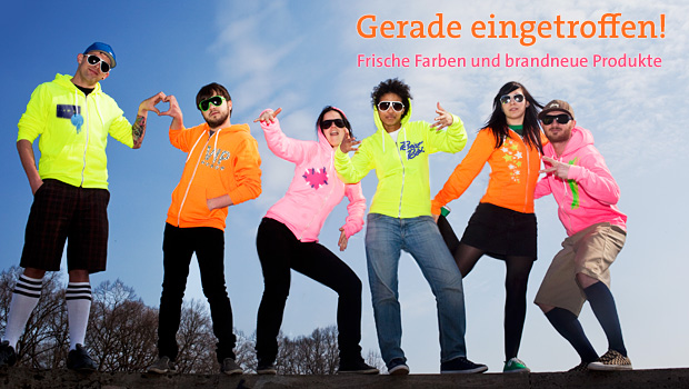 Ihr Lieben, nehmt es mir nicht übel, aber ich konnte nicht widerstehen. Lange haben wir überlegt, ob wir euch damit nochmal konfrontieren dürfen… und ja, wir haben uns die Erlaubnis gegeben. Es gibt sie wieder, die Neonfarben im Spreadshirtsortiment. Unsere Kapuzenjacke von American Apparel gibt es ab jetzt auch in den Farben: neon-gelb, neon-pink, neon-orange.