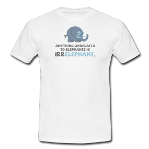 Mal ganz ehrlich: Elefanten sind ja wohl die lustigsten Tiere der Welt. Warum denkt sich jemand ein Tier aus mit großen Ohren, Beinen wie Säulen und einem Rüssel? Und manchmal gehen Elefanten sogar in Reih und Glied hintereinander her und halten „Rüsselchen“ am Schwänzchen des Vorderelefant. Ganz klar: alle anderen Tiere sind irrelephant!