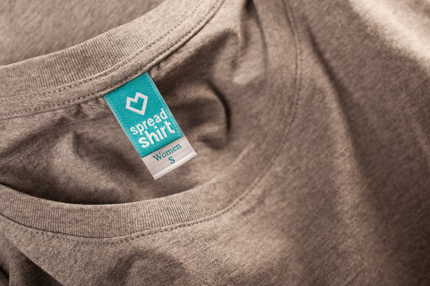Das Label im Nacken bleibt natürlich erhalten, wurde allerdings geringfügig überarbeitet: Das neue Label ist gewebt, besteht aus einer Lage und zeigt nur unser Spreadshirt-Logo sowie die Größe. Alle anderen Angaben sind auf dem Etikett an der Innennaht zu finden.