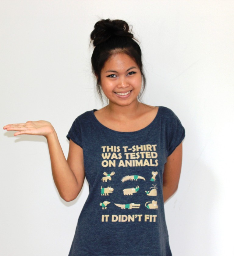 Ich finde, die Rechte von Tieren sollten mehr Beachtung finden. Dieses T-Shirt macht das auf lustige Weise deutlich und gleichzeitig kann man vielen Menschen dennoch ein Lächeln ins Gesicht zaubern, weil es so niedlich gemacht ist. Und weil es auf dem Shirt so viel zu sehen und zu lesen gibt, schauen die Leute auch mal etwas länger hin. So bleibt die Botschaft garantiert hängen.