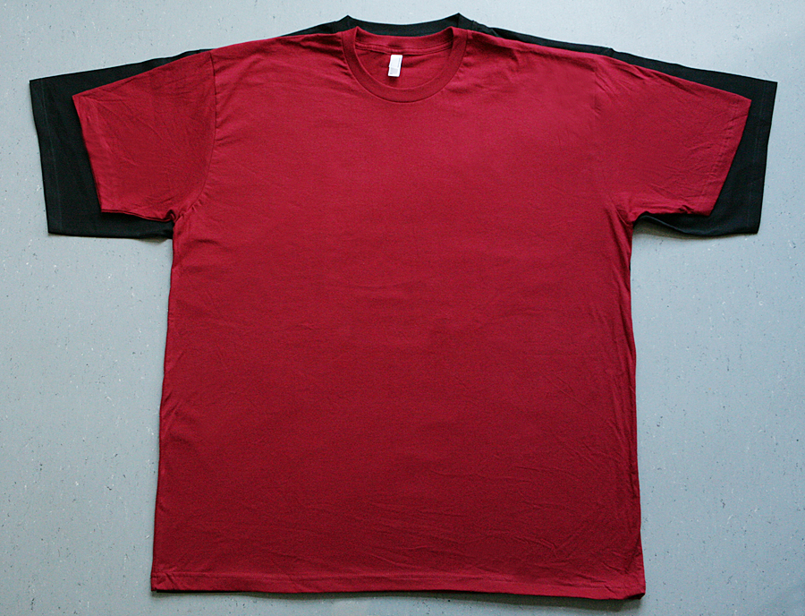 Während wir die Frauen in den Größen XL-3XL und in 6 Farben kleiden (weiß, schwarz, rot, navy, magenta, laubgrün), bieten wir den Herren der Schöpfung in den Größen 3XL-5XL ab sofort 5 verschiedene Farbtöne (weiß, schwarz, rot, navy, grün). Das Frauen Übergrößen-Tshirt stammt von Continental Clothing, bei den Männern haben wir uns für das Produkt von Promodoro entschieden. Im Vergleich zu dem Männer T-Shirt von American Apparel entspricht die 3XL bei den neuen Übergrößenshirts einer 4XL (s. links: American Apparel rot, Promodoro schwarz dahinter). Dieser (Nicht-) Unterschied liegt mit aller Wahrscheinlichkeit darin begründet, dass die Produkte auf unterschiedlichen Kontinenten hergestellt werden, wo (noch) unterschiedliche Körpermaße der Herstellung als Vorgabe vorliegen.