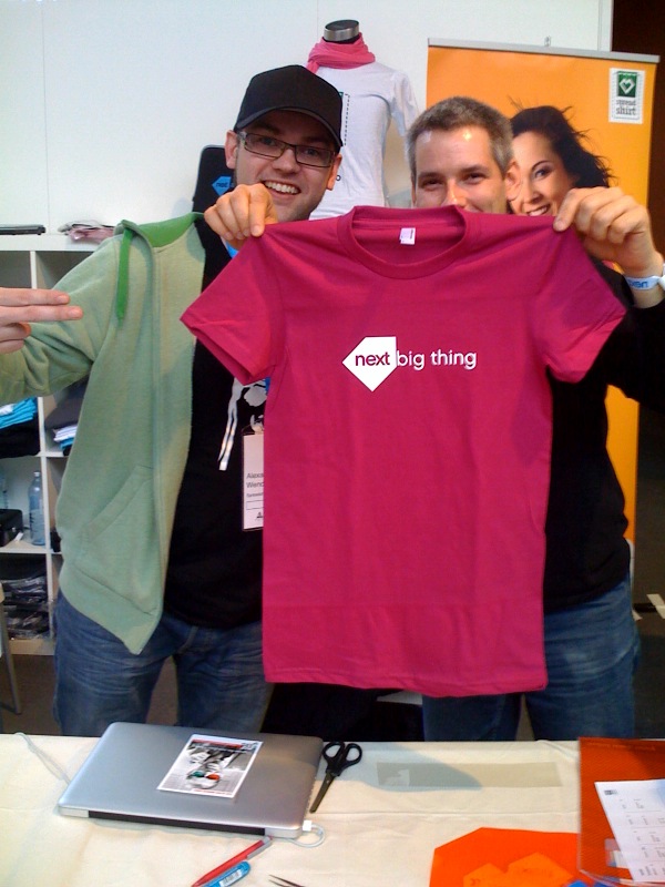 Alles in allem war die next also trotz der “Nähe” zur re:publica eine interessante Veranstaltung, wo auch wir uns von Spreadshirt gut positionieren konnten — und das taten, was wir am besten können: Fleißig T-Shirts drucken. Nicht ganz soviel wie auf der re:publica, aber dafür mehr Babybodies, und wie gesagt: Auf der next waren vom Klientel her doch mehr Hemd- als T-Shirtträger vertreten.