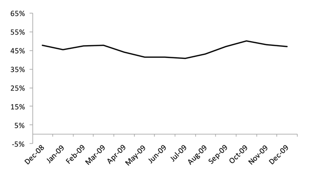 Jetzt aber erstmal zum Wasserstand des vierten Quartals 2009. Der NPS bewegte sich auf einem sehr hohen Niveau zwischen 50.1% im Oktober bis hin zu 47.3% im Dezember. Dass es uns gelungen ist, auch die Weihnachtssaison zu Eurer Zufriedenheit zu bewältigen, hat uns besonders gefreut. Denn wir wissen aus der Vergangenheit, dass längere Lieferzeiten infolge von Hochdruckphasen (eben wie Weihnachten, größere sportliche Events oder gutes T-Shirtwetter) sich umgehend in einem schlechteren NPS zeigen würden.