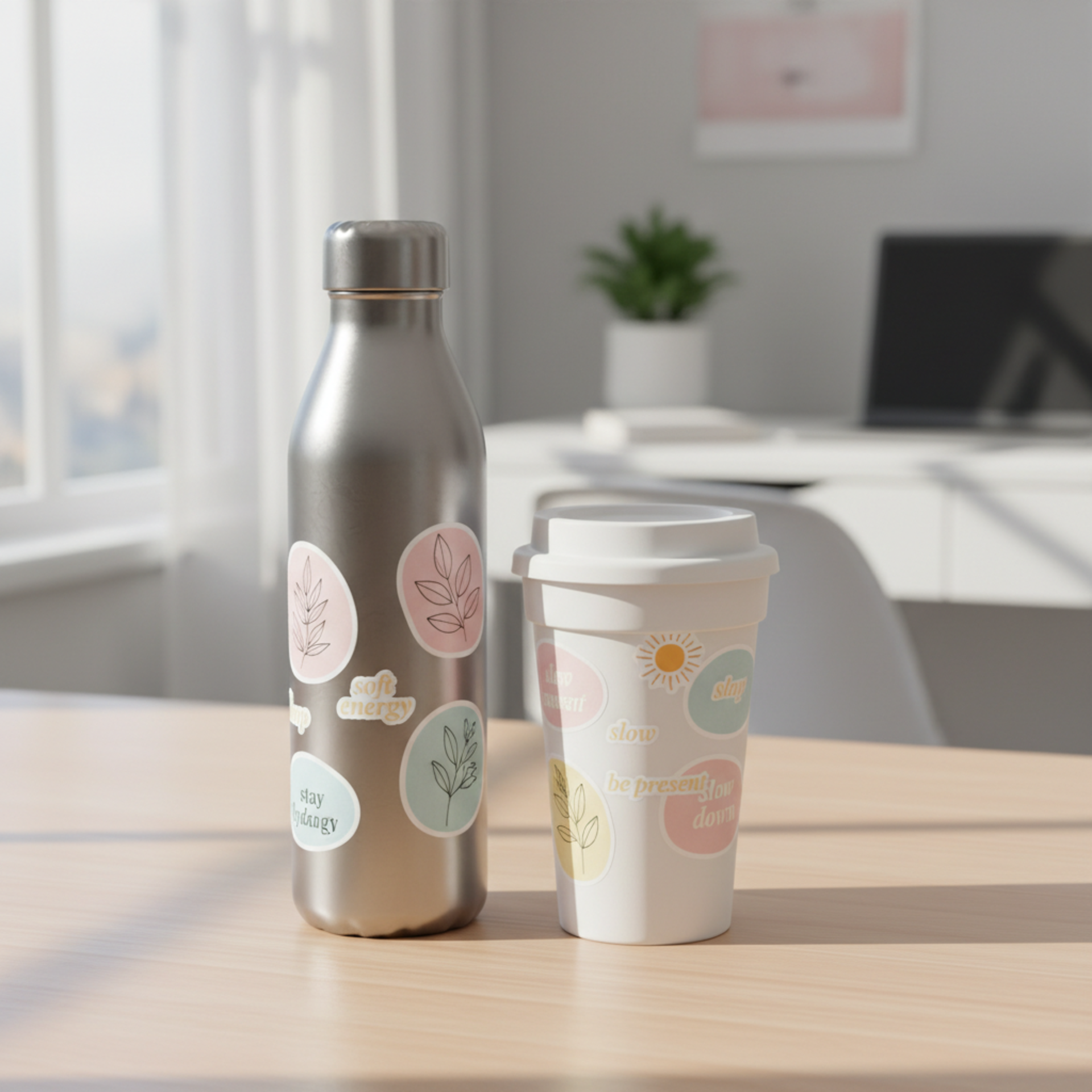 Wie gestaltest Du Deine Trinkflasche oder Deine Coffee Mug mit Stickern?