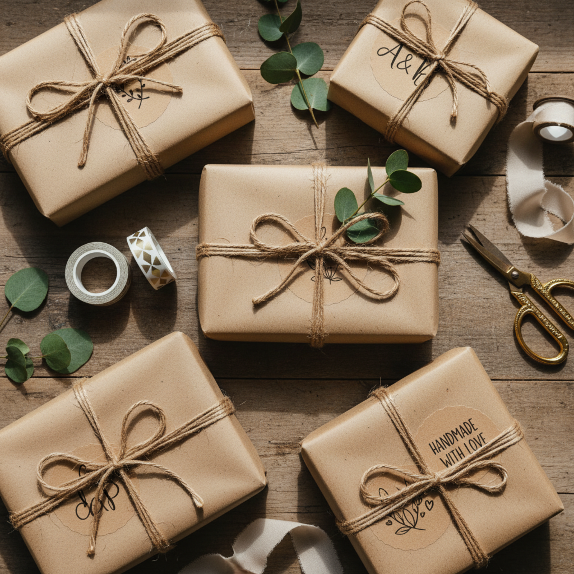 Geschenkverpackungen feiern ein Comeback. Pinterest ist aktuell voll davon. Naturpapier, Bastschleifen, kleine Eukalyptuszweige. Und mittendrin: selbstgestaltete Sticker, die alles zusammenhalten und dem Geschenk diesen „Mit Liebe verpackt“-Look geben.
