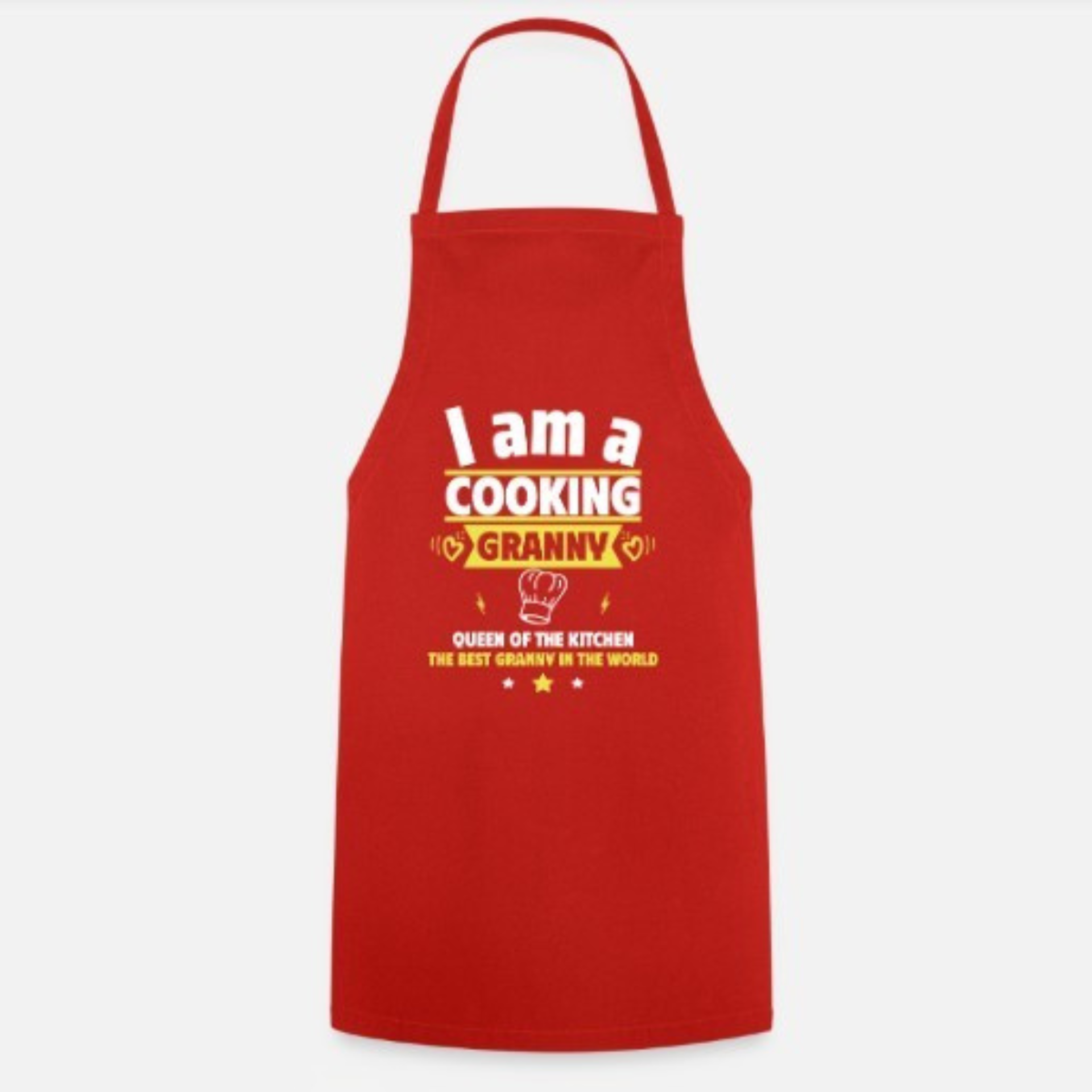 - Schürze mit Spruch: „Ich kann auch ohne Rezept – meistens.“