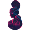 Grafik in Form eines eckigen Herzens mit weißem Umriss, ähnelt einem T-Shirt.